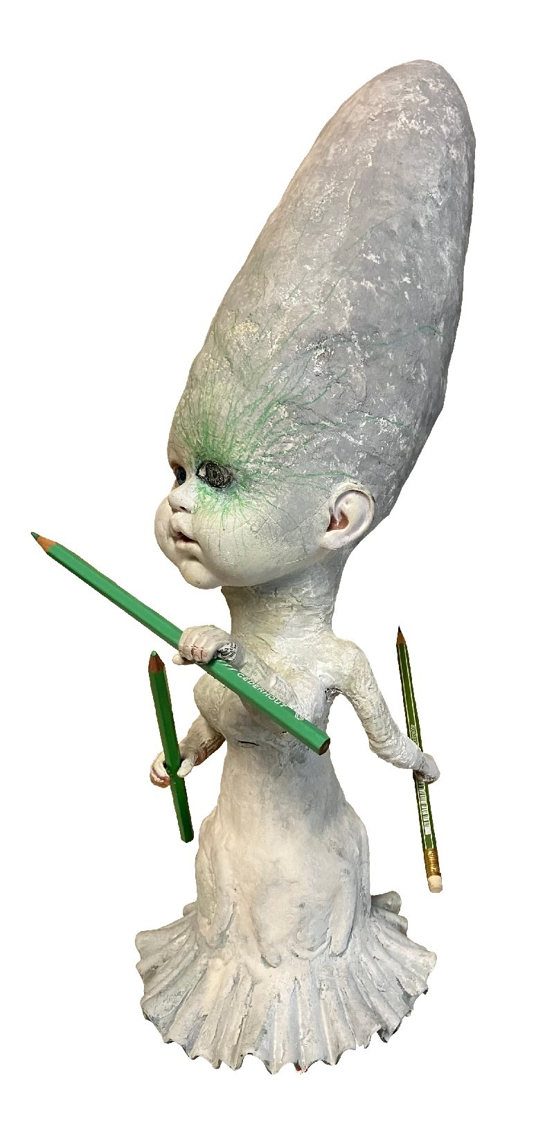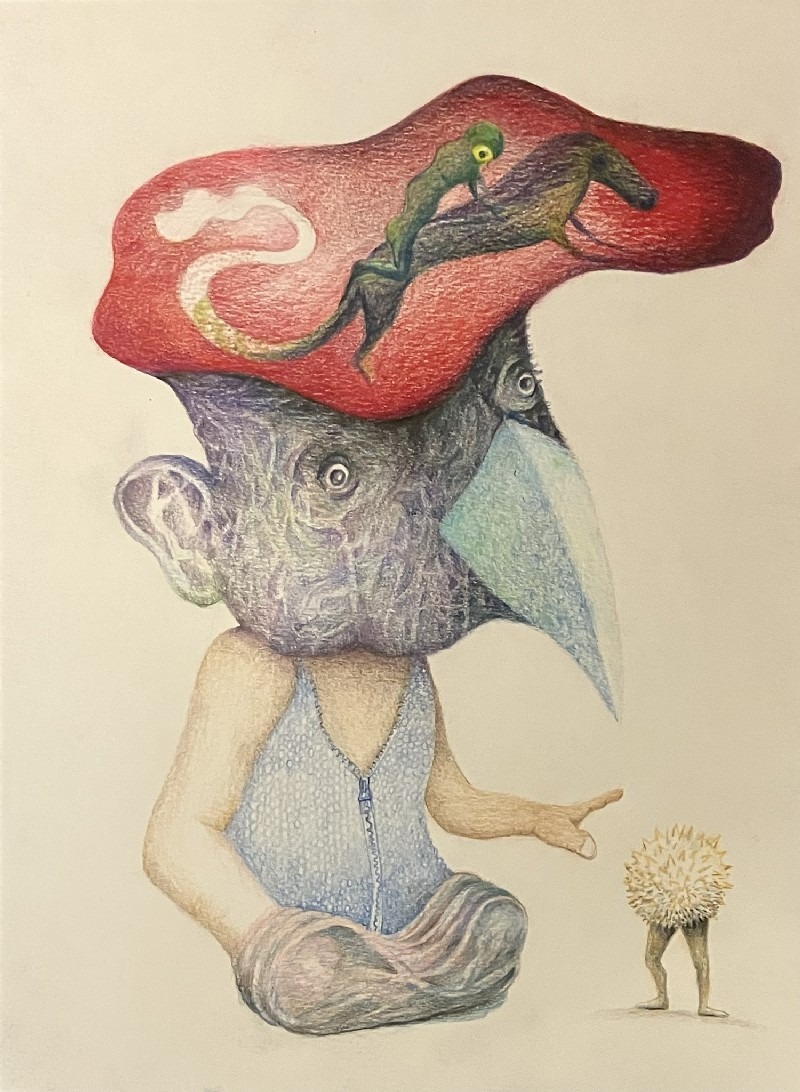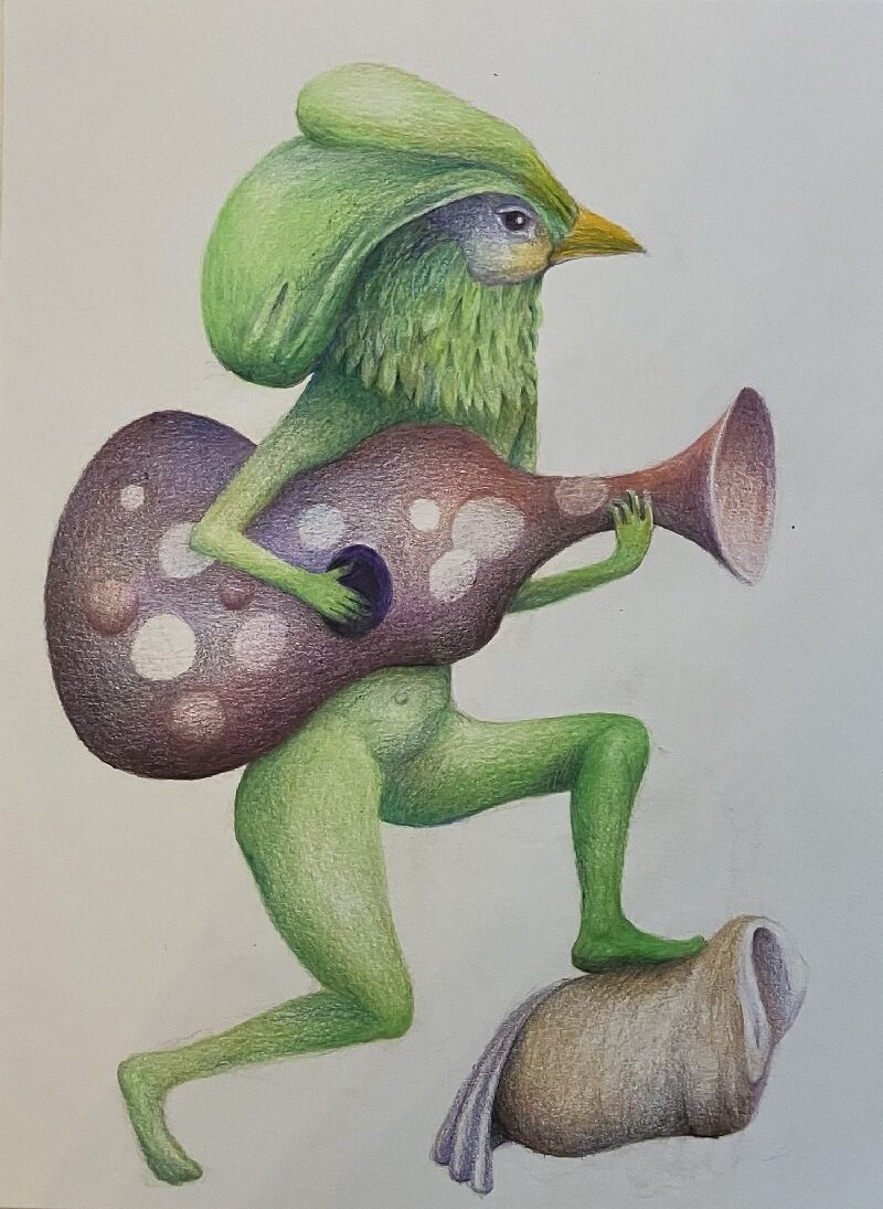Al tijdens die opleiding schilderde hij graag fantasiewezens en een niet bestaande wereld. Die thematiek is gebleven, maar de gebruikte materialen zijn uitgebreid. Behalve acrylverf en kleurpotlood voor het platte vlak, maakt hij graag objecten die hij samenstelt van spullen die hij vindt in kringloopwinkels, zodat er meer onverwachte vormen en creaturen ontstaan.