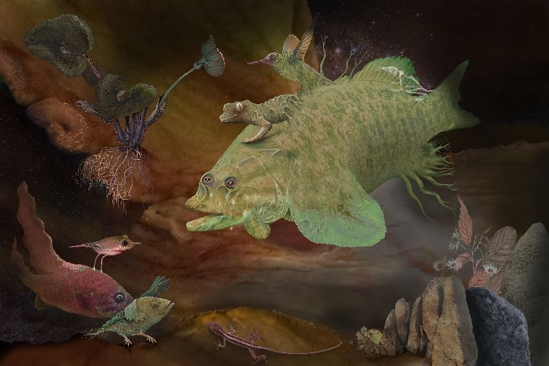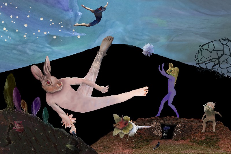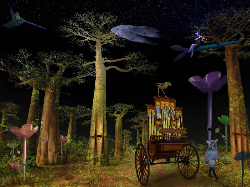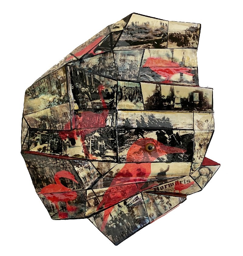 Nog een andere techniek is het maken van digitale collages, gebruikmakend van zijn 30-jarige ervaring met Photoshop, zonder AI toe te passen.